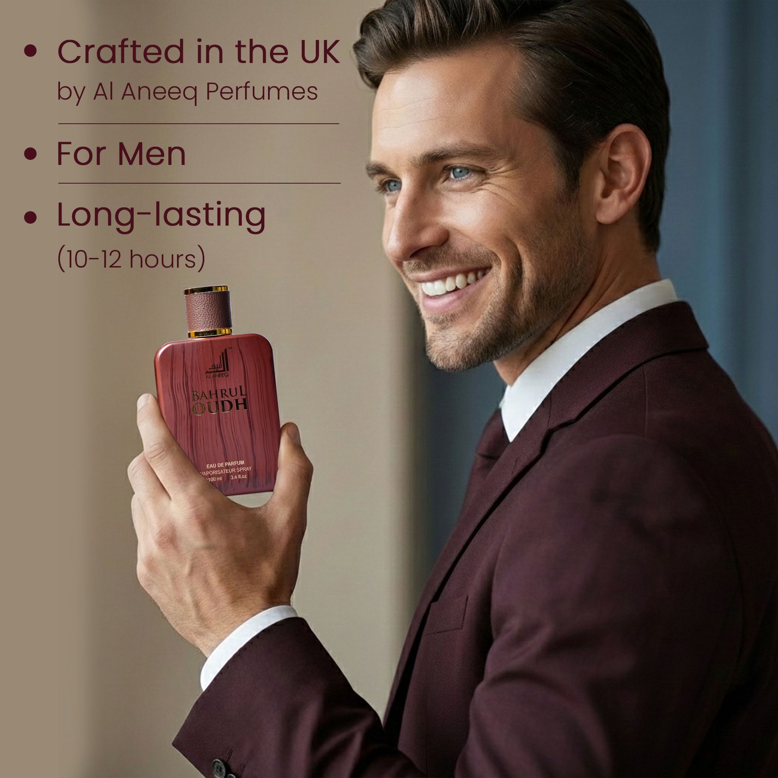 The Arabic meaning of Bahrul Oudh is Ocean of Oudh. A perfect addition to any collection for those who love woody perfumes, the oud wood notes are a bonus to this unique and valuable fragrance. A masterfully crafted oriental fragrance that weaves together the majestic woody notes of oud with sharp scents of musk and eastern spice, this fragrance is an inspiration to your mind, body and soul. Latest perfume for men by a UK based perfume house.